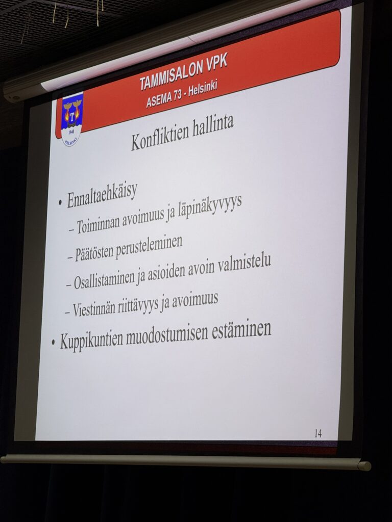 Uudenmaan Pelastusliiton järjestötoimikunnan järjestämä ja ideoima Hallinnon opintopäivä kokosi 43 palokuntatoimijaa ympäri Uuttamaata (ja mahtuipa joukkoon pari Pirkanmaalaistakin) + 5 kouluttajaa, lauantaina 17.1.2026 Malmin VPK:lle. Päivä tarjosi viiden asiantuntijan voimin kattavan katsauksen yhdistys- ja palokuntahallinnon keskeisiin teemoihin – lakivelvoitteista taloudenhoitoon, sääntöuudistuksista haastaviin henkilöstötilanteisiin ja tulevaisuuden strategiseen suunnitteluun.