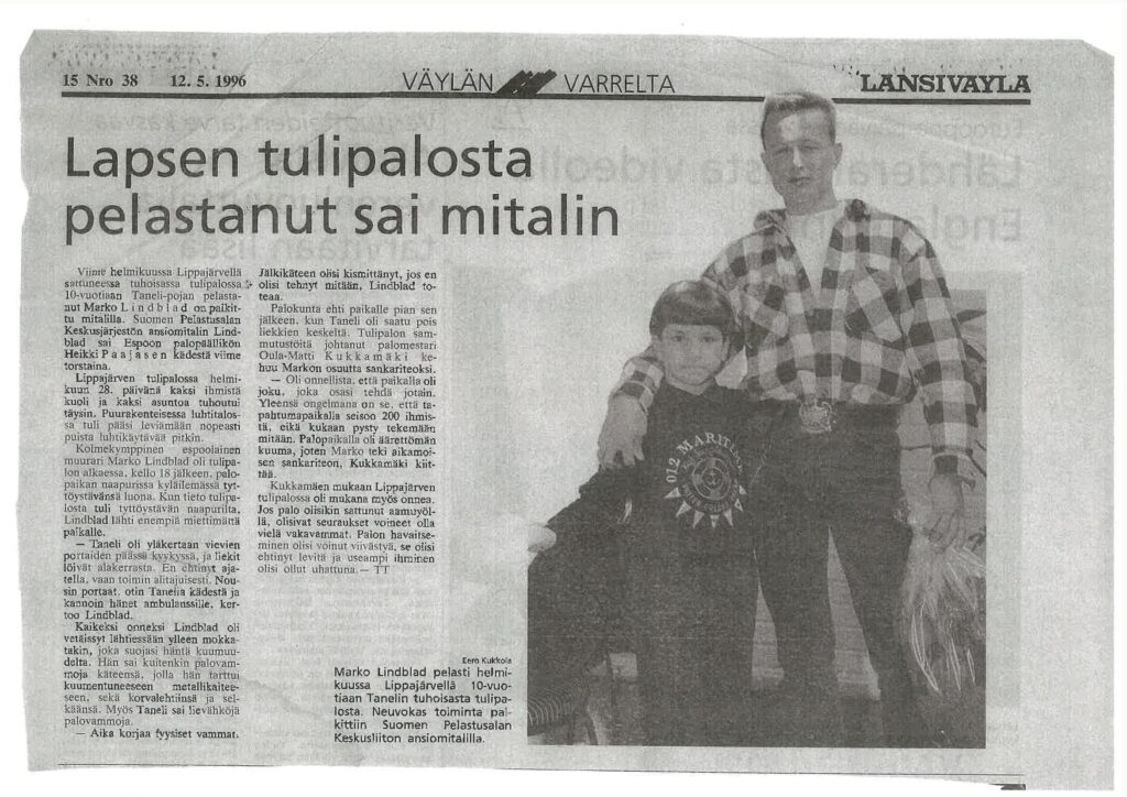 Takaisin salapoliisitehtävään, eli loppujen lopuksi Sari Tuuri-Salonen sai puhelun ansiomitalista, ja sen uudelleen saamisesta, ja siitä se ajatus sitten lähti. Tehtävälle oli 1996 tullut paikalle silloin päivystävänä palopäällikkönä toiminut Heikki Paajanen, ja hän myös myöhemmin ansiomitalin, Suomen Pelastusalan Keskusjärjestön ansiomitalin, Markolle ojensi. Ansiomitali oli haettu Uudenmaan Pelastusliitosta, joten perustiedot löytyivät helposti.