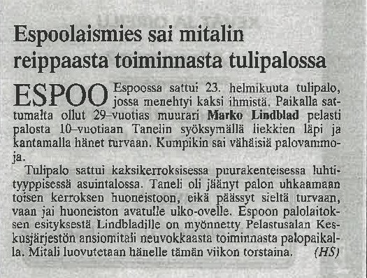 Tammikuussa 2025 Marko Lindblad huomasi, että muuttojen yhteydessä eräs tärkeä ansiomitali oli kadonnut, vuonna 1996 hänelle myönnetty hengenpelastusmitali. Siitä alkoi pienimuotoinen salapoliisityö, kuka mitalin olikaan myöntänyt, ja olisiko mitalia ja ansiokirjaa mahdollista saada kopiona. Marko ajatteli, että olisi upeaa hänen omille lapsille ja lapsenlapsilleen saada tuo ansiomitali, niin harvinaisia ne kuitenkin ovat.