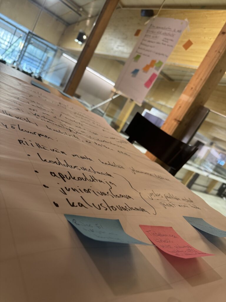 Tämänkertainen seminaari pidettiin Järvenpään Aino Areenalla ja se painottui johtamisen tematiikan ympärille. Ohjelman vetäjä Pietari Muurinen isännöi seminaaripäivää ja päivän alussa kertasimme ohjelman taustaa ja pääsimme miettimään ajatuksia erilaisten aiheiden parista. Kiertopistetyöskentelyllä päivän mittaan kartoitettiin osallistujien ajatuksia fläppipapereille seuraavista aiheista: