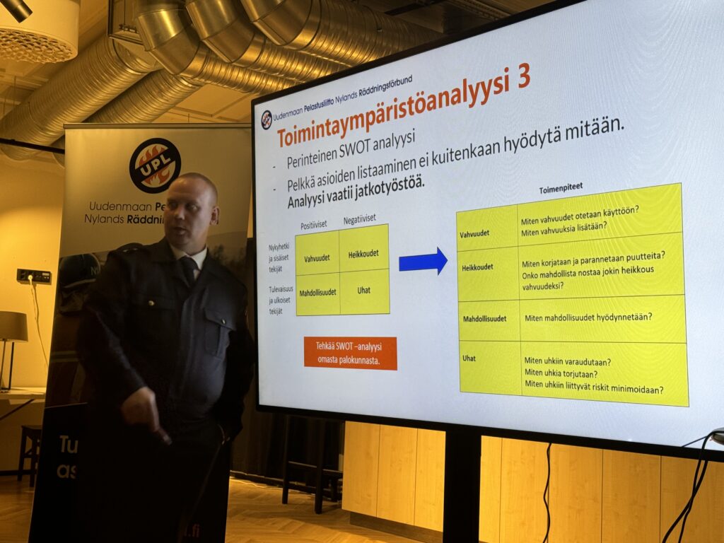 Päivän aikana osallistujat pääsivät pohtimaan palokunnan toiminta-ajatusta sekä visiota ja missiota käsitteinä sekä perehdyimme strategian laatimisen merkitykseen. Juhan iltapäivän osuuden aikana osallistujia osallistettiin pohtimaan asioita oman palokunnan näkökulmasta. Juhan luentomateriaalista voit itse miettiä samoja aiheita, myös näin jälkikäteen.